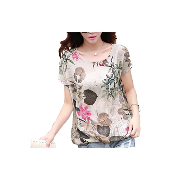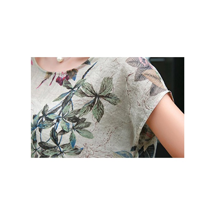 (《슈푸리》) Surpris 보태니컬 반소매 톱스 프린트 T셔츠 크루 넥 넉넉하게 S M L XL XXL (4:XL사이즈)