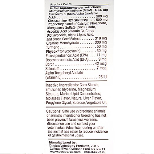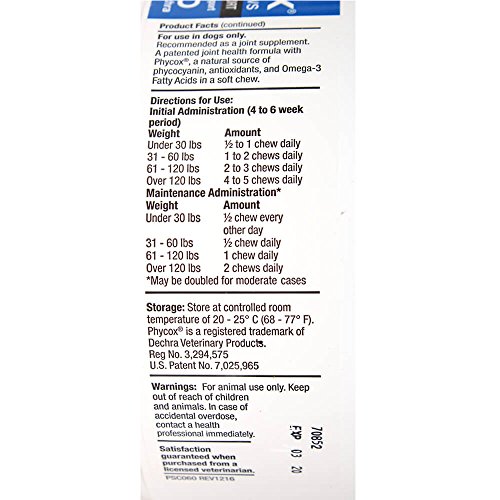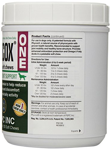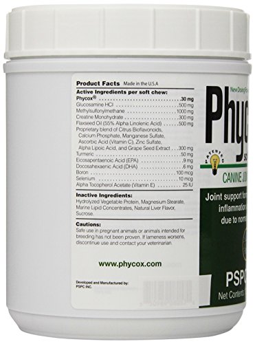 Phycox Soft Chews Canine Joint Support is the only joint supplement with a novel, patented joint support matrix containing Phycocyanin, a completely natural anti-inflammatory and antioxidant, derived from blue-green algae. Pets love the taste of Phycox . Phycox is a complete formula that helps support preventive care and reduces joint discomfort and inflammation.Feature