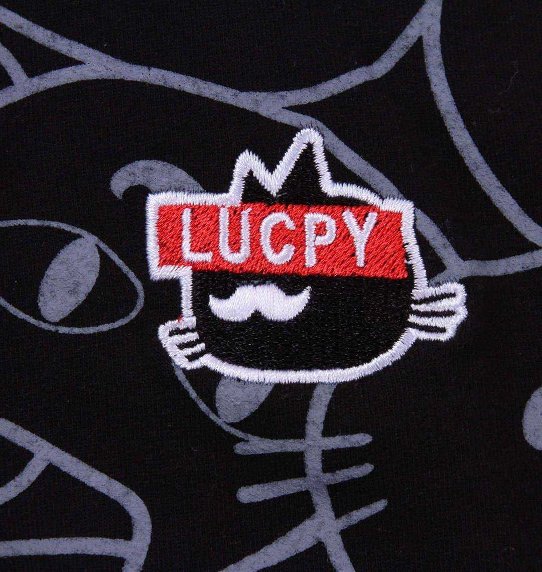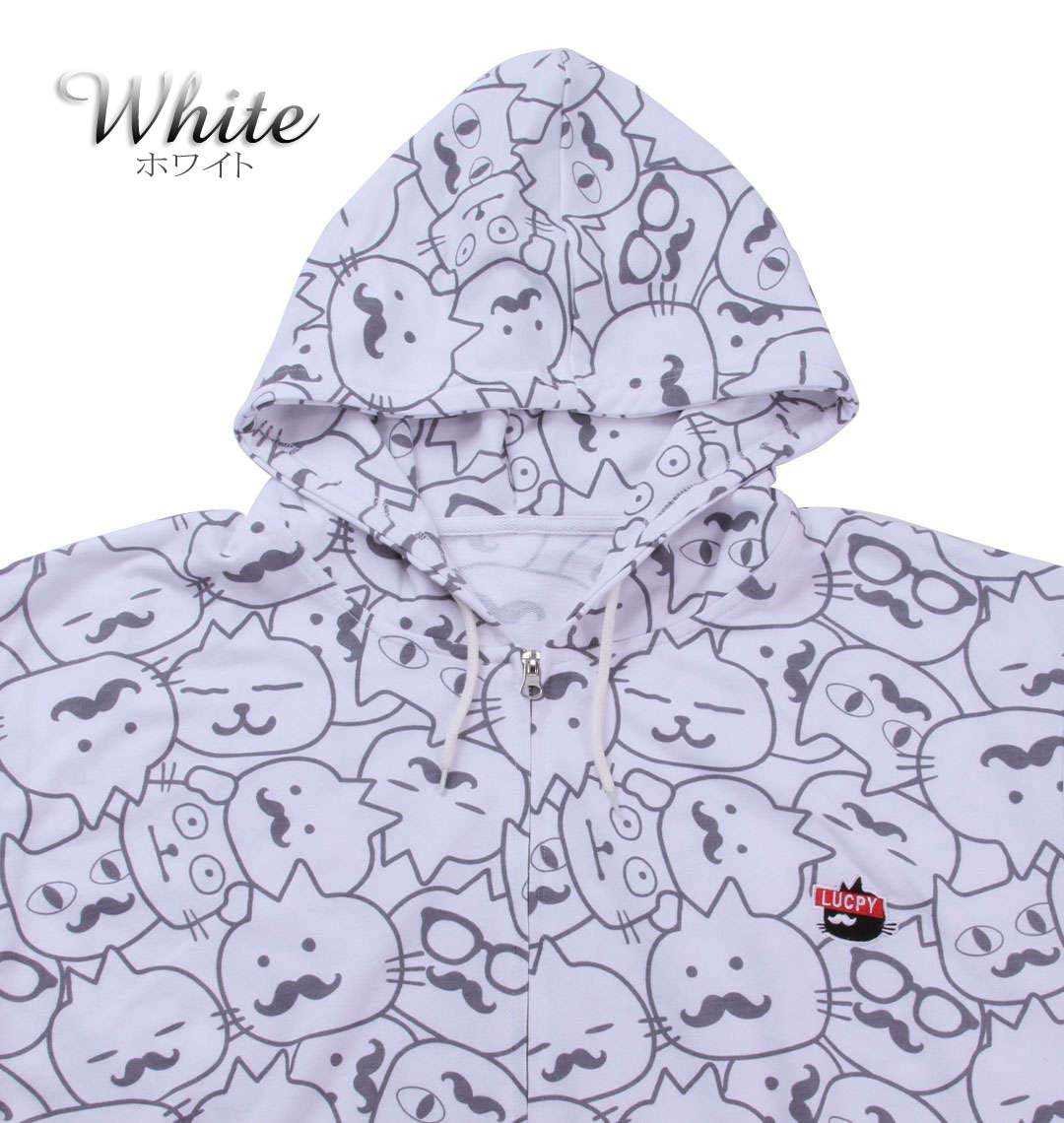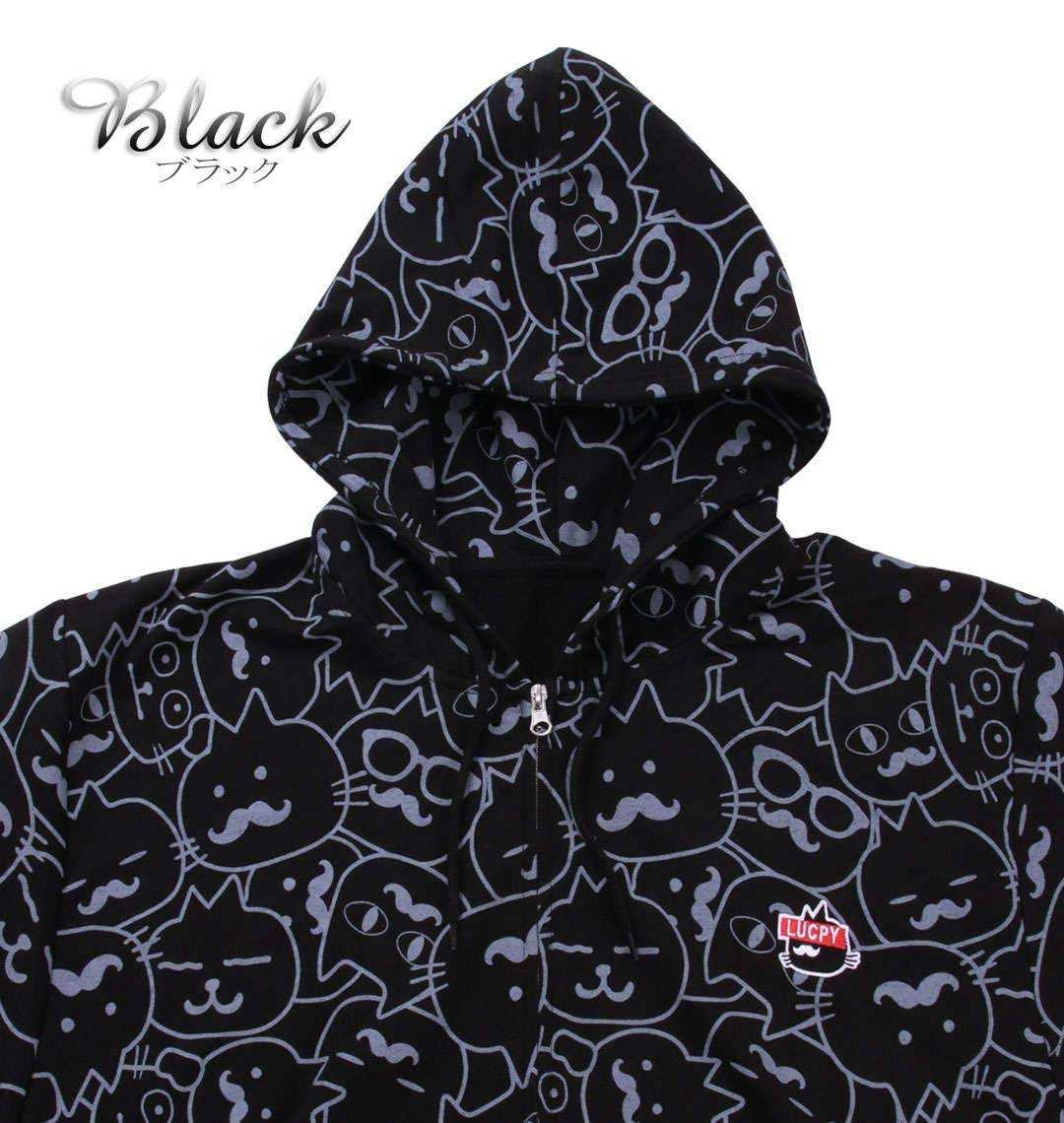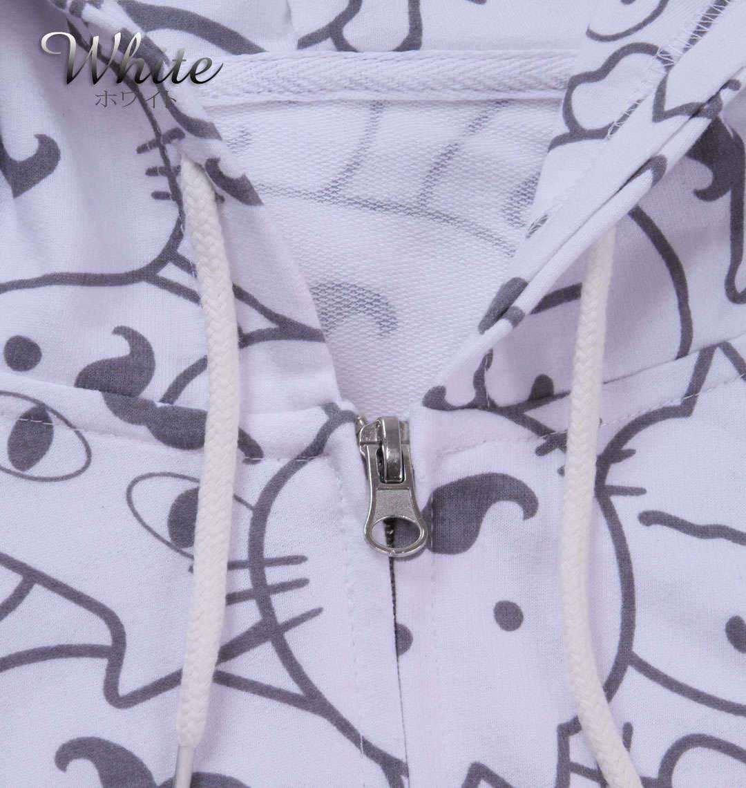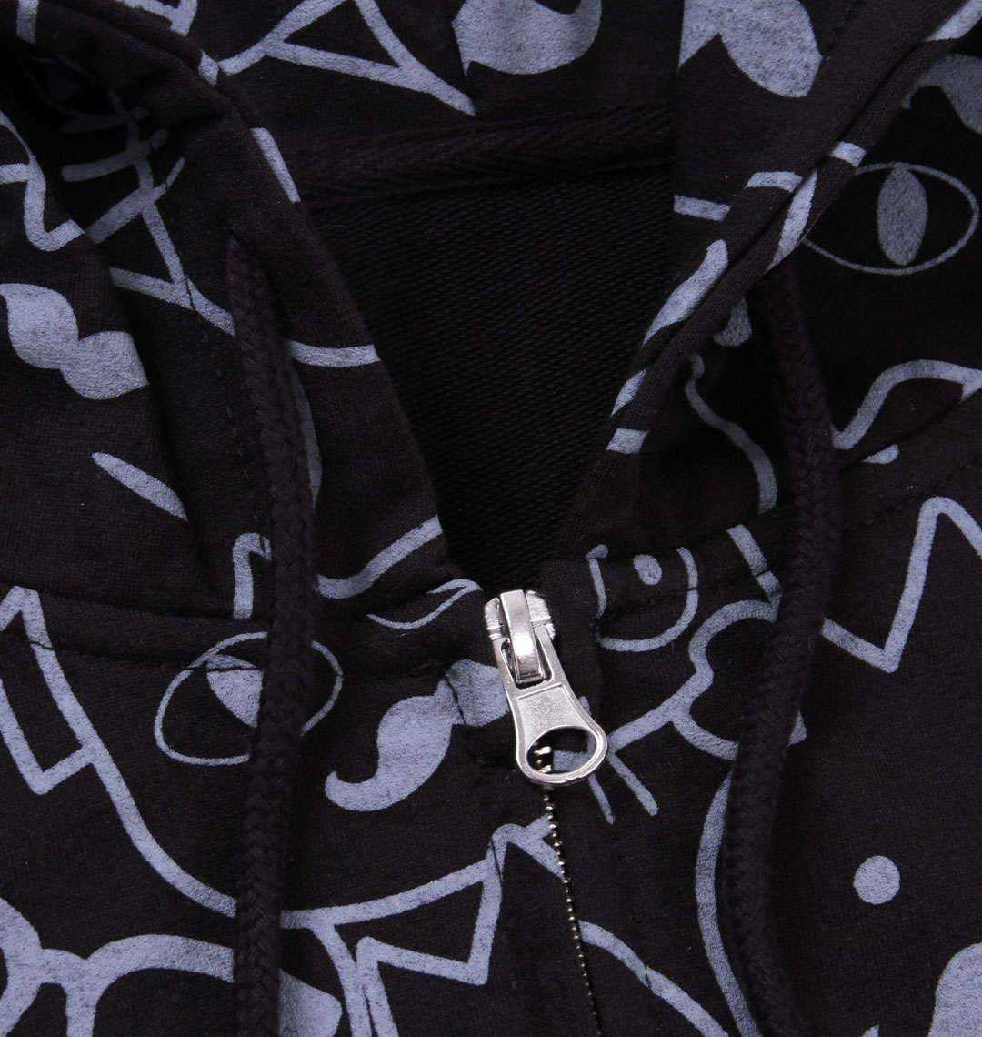 愉快なラクピーフェイスの総柄が楽しい、半袖フルジップパーカーとハーフパンツの上下セット。