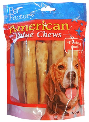 -. Binding : Misc. -. Brand : Pet Factory -. EAN : 0094983287480 -. Feature : Coatings are water soluble, but may stain indoor materials / Great quality at a great P.R.Ice / Subject to all the same quality and inspection standards as our USA products -. Label : Pet Factory - Pets -. Manufacturer : Pet Factory - Pets -. Model : 28748 -. MPN : 28748 -. PackageQuantity : 1 -. PartNumber : 28748 -. ProductGroup : Pet Products -. ProductTypeName : PET_SUPPLIES -. Publisher : Pet Factory - Pets -. Size : Small/5" -. Studio : Pet Factory - Pets -. Title : Pet Factory American Beef Hide Chicken Flavored Chip Rolls Chews for Dogs (8 Pack), Small/5" -. UPC : 094983287480