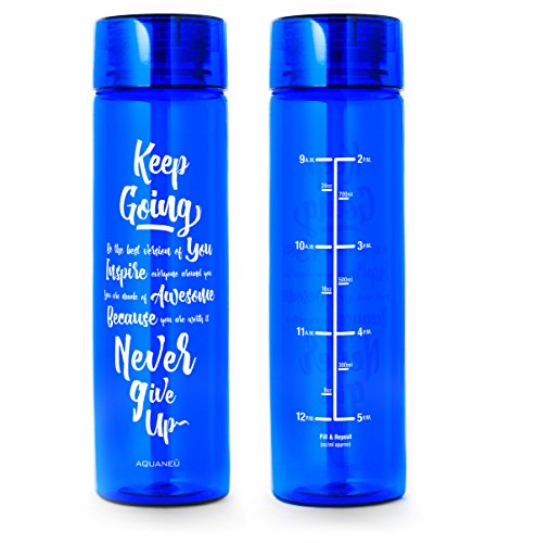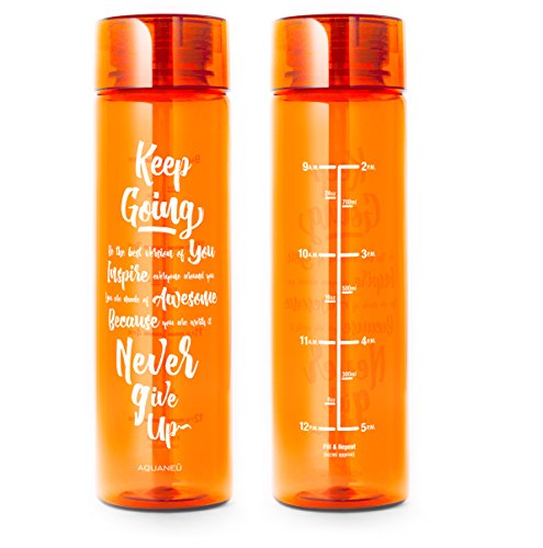Inspirational sayings inspire you all day. This Fitness Workout Sports Bottle is Great. Use these bottles Go hiking, climbing, running, to the gym, or to work. This water bottle is BPA-free with Eastman Tritan Copolyester material that is durable and safer to drink out of than standard plastic bottles, and it won't distort the tastes of your drink. This bottle is designed to hold 32 oz. The inspirational water bottle with quote is designed to motivate you, get you going and keep you moving, as well as a custom time marked water bottle with time marker to help you keep track of your water consumption. This inspirational water bottle is constructed with durable BPA-Free materials with wide-mouth opening which lets fill and clean easily.Feature