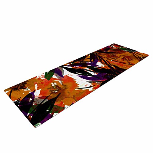 (Kess InHouse)/Yoga/Mats/DIRECT FROM USA/KESS InHouse Ebi Emporium "floral Fiesta - Orange" Floral Painting Yoga Mat, 72" X 24"