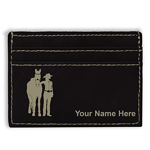 -. Binding : Apparel -. Brand : SkunkWerkz -. ClothingSize : Medium -. Color : Black -. Department : mens -. EAN : 0655222572226 -. Feature : The Money Clip Wallet is laser engraved with the image that you see in the photo. / Your name or personalized message will be engraved on the wallet for free. / Synthetic leather construction. Includes space for 3 credit cards. / You may have one line of engraved text - 20 characters maximum. / Click the "Customize Now" button to begin customizing your wallet. -. ProductGroup : Apparel -. ProductTypeName : ACCESSORY -. Size : Medium -. Title : Money Clip Wallet, Horse and Woman, Personalized Engraving Included (Black) -. UPC : 655222572226