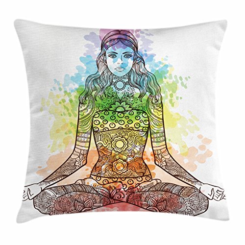 (Ambesonne)/Bedding Bath/Bedding/DIRECT FROM USA/Yoga Throw Pillow Cushion Cover by Ambesonne, Tattoo Mehndi Style Vintage Ornate Woman Figure i...
