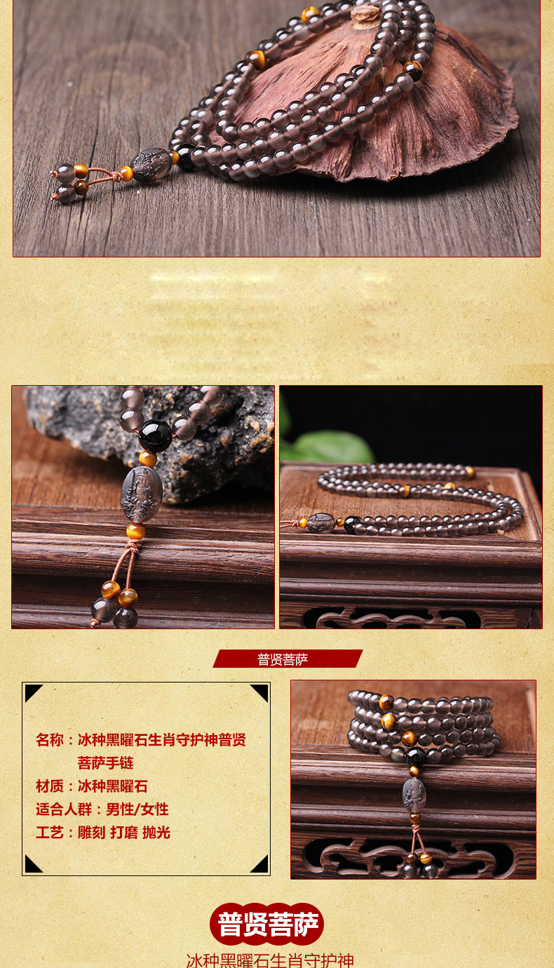 开光冰种黑曜石属马本命佛大势至菩萨肖马曼唯传奇手链男女款礼物