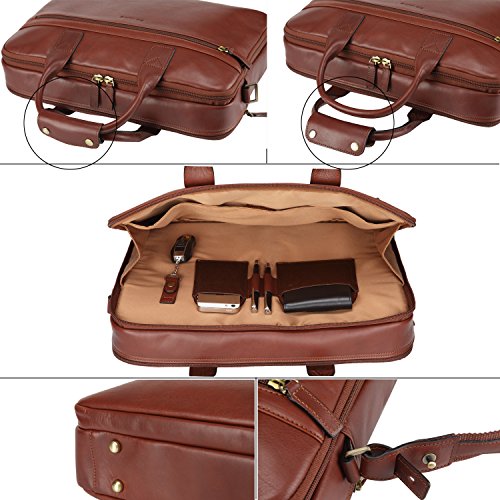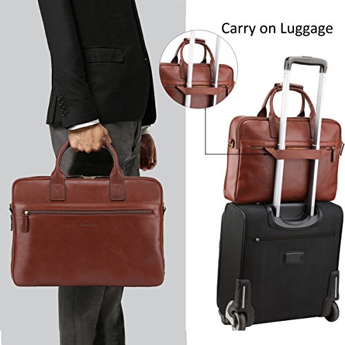 -. Brand : Banuce -. ClothingSize : onesize -. Department : mens -. Feature : Vegetable tanned leather imported from Italy / Tote handles with 4.1 inch drop. Additional canvas leather shoulder strap, detachable and adjustable, up to 23 inch drop. / Exterior: front 1 x zippered pocket; back 1 x zippered pocket, interior with tape for carry bag on lage / Two section desigh. 1st main section: 1 x full length pocket; 1 x hanger; 2 x pen slots; 2 slip pockets. 2nd main section: 1 x padded laptop sleeve; 1 x zippered pocket; 2 x slip pockets. / Dimension: 15.75 L * 3.1 D * 11.4 H inch. Padded sleeve fits up to 15 MacBook Por and most model 14 inch laptop. -. Model : LDOFYBM118 -. ProductGroup : Apparel -. ProductTypeName : LAGE -. Size : onesize -. Title : Banuce Italian Leather Tote Briefcase Business 15 inch Laptop Bag