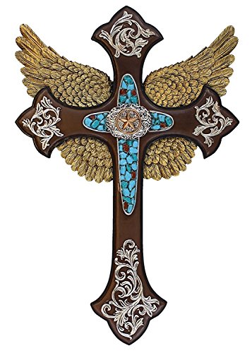 Star Cross with Scrolls and Angel Wings in Turquoise Accent