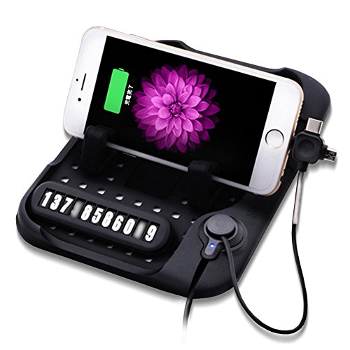 -. Title : DELAM 車載ホルダー シリコンシート 粘着シール不要 ダッシュボードに簡単取付 滑り止め iphone/iPad アイフォン アンドロイド スタンド DIY設計 GPSホルダー 車載充電器 滑り防止マット USBケーブル/ 3イン1マグネット充電コネクタ付 黒
