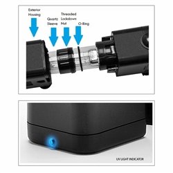 AQUATOP's UVE Series submersible UV filters are designed to be fully submersible in both fresh and saltwater. Easy to install and maintain, this innovative and flexible filter will help eliminate unsightly algae and control unwanted algae blooms. The UV bulb aids in the health of aquatic life by eradicating free floating microorganisms and disease causing pathogens in both salt and freshwater aquariums. Each unit is equipped with an optional venturi line for added oxygenation and offers an adjustable flow rate for a customized fit. The innovative UVE Series is compact and outfitted for professional aquarium use.Feature