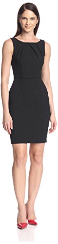 Product DescriptionSleeveless sophisticated stretch woven sheath dress with modern pleated neckline and invisible back zipper.0