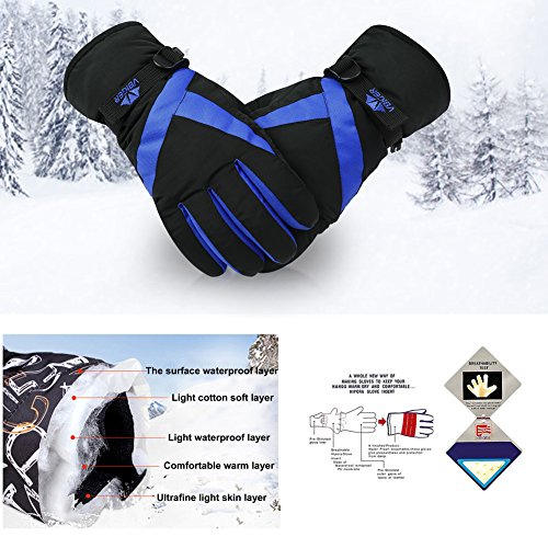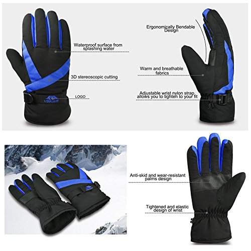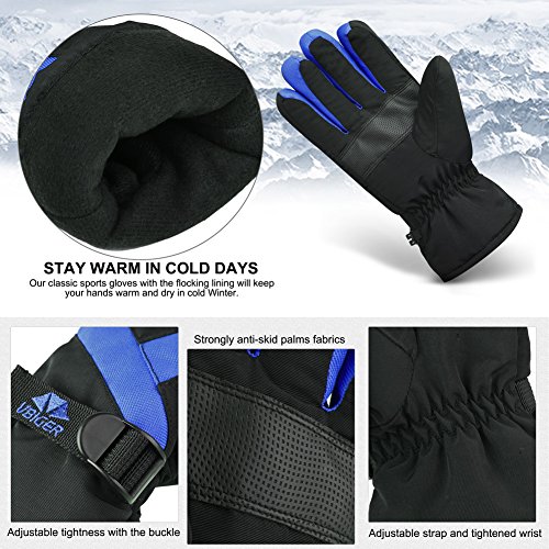 Vbiger Ski Gloves Snow Mittens Waterproof Winter Warm Cycling Gloves