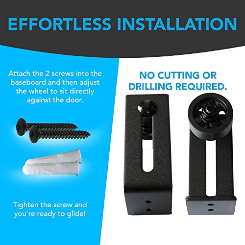 ✔ EFFORTLESS INSTALLATION- Mount to the wall by attaching the 2 screws into the baseboard and then adjust the wheel to sit directly against the door. Tighten the screw at the bottom and you’re ready to glide! No cutting or drilling required.