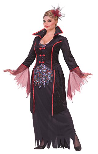 -. Binding : Apparel -. Brand : Forum Novelties -. Department : womens -. Feature : Lady von blood adult vampire costume includes dress, caplet, and collar / Plus size fits most women with a bust size of 42-46 inches and a waist size of 38-45 inches / To care for, hand wash gently and line dry / Additional accessories sold separately / Made by forum novelties, a leader in costumes and novelty products for more than 30 years -. Genre : Classic -. IsAdultProduct : 0 -. Label : Forum Novelties Costumes -. Manufacturer : Forum Novelties Costumes -. PackageQuantity : 1 -. ProductGroup : Apparel -. ProductTypeName : ADULT_COSTUME -. Publisher : Forum Novelties Costumes -. Studio : Forum Novelties Costumes -. Title : Forum Novelties Women's Plus-Size Lady Von Blood Vampire Costume