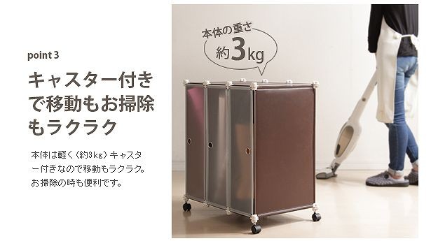 サイズ(cm):幅61x奥行37x高さ65(キャスターなし61)cm・約3kg