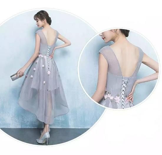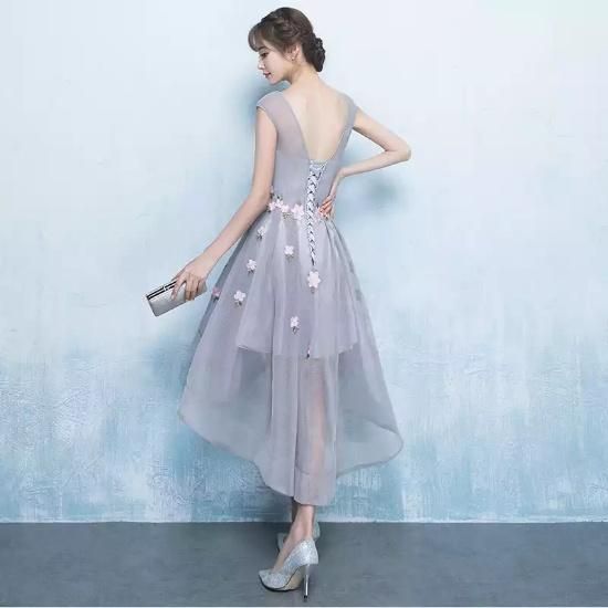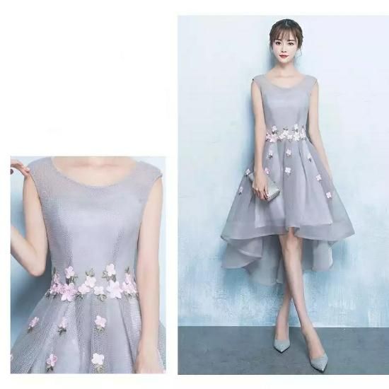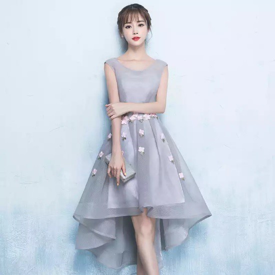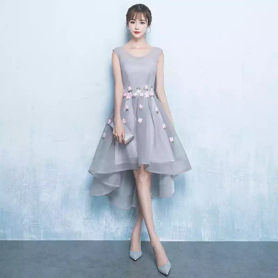 パーティードレス ミモレ丈 ひざ丈 ワンピース 花モチーフ ノースリーブ フィッシュテール メッシュ グレー 大人 可愛い 上品 お呼ばれ drgz2189