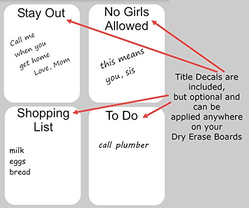 - Feature : ♦♦♦WHAT IS IT: Pack of (4) 21.6 cm x 28 cm (8.5" x 11") Dry Erase Sheets with 1 Dry Erase pen included. Sheets that you can put where ever you may need it...always easy to remove. This decal can be placed anywhere there is a smooth surface. It's easy to install, just peel and stick. Great for putting a grocery list on the fridge, leaving the kids a note on their door and hundreds of other uses! / ♦♦♦INSTALLATION: Easy step by step PDF instructions will be attached to an email and arrive after your Amazon purchase to your inbox. Installation instructions are in the product description below. / ♦♦♦WHY US: There are many others selling something similar, poor quality, and usually from China. That is not what you will get with our product! We are family owned and take pride in what we sell. Also all of our products are made right here in the USA! So you know you will get a high quality product...that you will be proud to display in your home, office or even a daycare. / ♦♦♦SAFE: You will not have to worry about this decal falling off the wall and possibly hurting someone like you would if you had a heavy dry erase board. This decal is Super DURABLE 4 mil thickness that you will not have to worry about tearing Also water resistant and is safe to put on your wall. / ♦♦♦CUSTOMER SERVICE: We stand behind our products 100% including service after the sale. If you are not satisfied with your purchase, we have a 100% no questions, no hassle, money back guarantee.