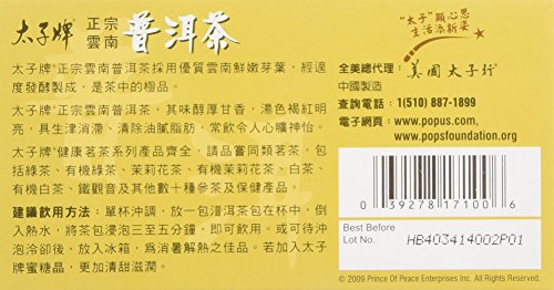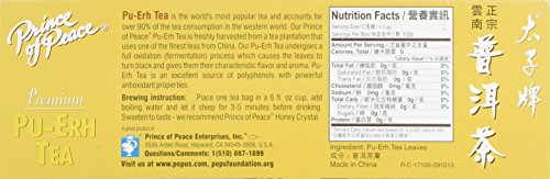 -. Binding : Misc. -. Brand : Prince Of Peace -. EAN : 0707005084768 -. Feature : PRINCE OF PEACE / 039278171006 / 13760991 -. IsAdultProduct : 0 -. Label : PRINCE OF PEACE -. LegalDisclaimer : Unless otherwise noted, this item has not been evaluated by the United States Food and Drug Administration. It is not approved to diagnose, treat, cure or prevent disease. -. Manufacturer : PRINCE OF PEACE -. MPN : 039278171006 -. PackageQuantity : 1 -. PartNumber : 039278171006 -. ProductGroup : Grocery -. ProductTypeName : GROCERY -. Publisher : PRINCE OF PEACE -. Size : ONE -. Studio : PRINCE OF PEACE -. Title : Prince of Peace Premium Pu-Erh Tea - 100 Tea Bags -. UPC : 039278171006