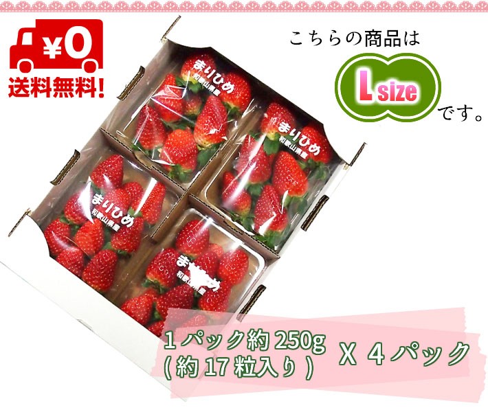 和歌山県産 イチゴ まりひめ Lサイズ 約250g(1パック約17粒) x 4パックで送料無料の商品になります。
