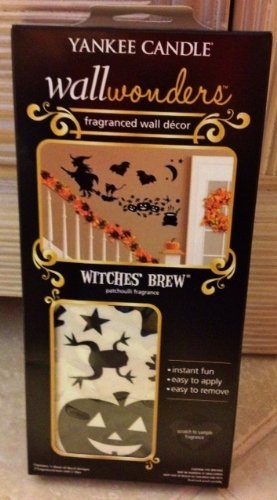 Boo! Halloween will never be the same once you have the Witches' Brew fragranced wall decor. Includes 1 sheet of decal designs and 2 fraganced bats and 2 clips (for 3D effect)