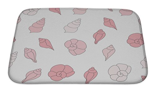 Gear New No Slip Microfiber Memory Foam Pattern with Pink Sea Shells on The White Bath Rug Mat, 24" X 17"