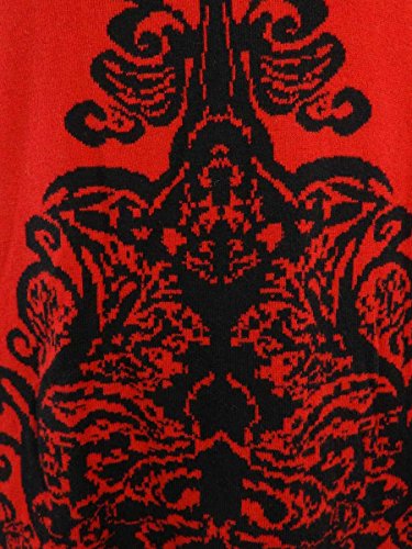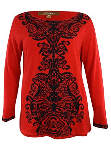 Sweater features no lining, crewneck, long sleeves, paisley front, knit fabric, and pullover style.