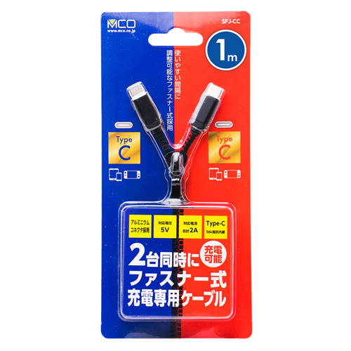 ●USB Type-C対応機器を2台同時に充電できる、ファスナー式充電専用ケーブル
