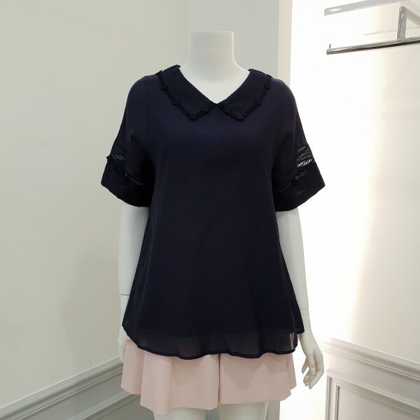 소매 시스루디테일 카라셔츠형 블라우스안감배색으로 비침걱정없어요♡