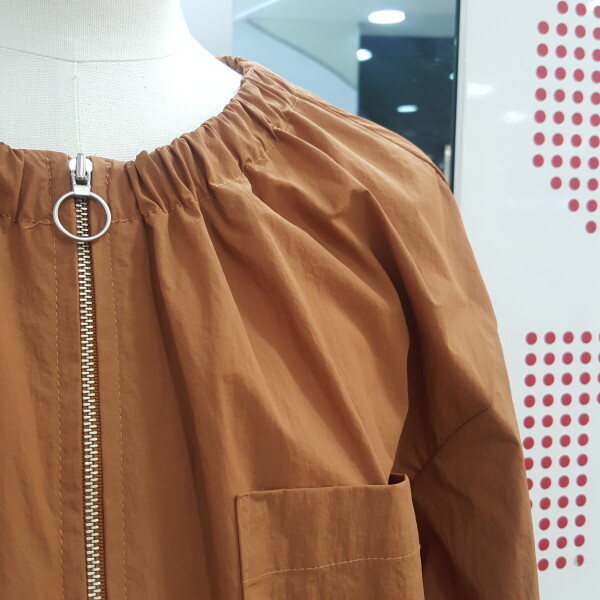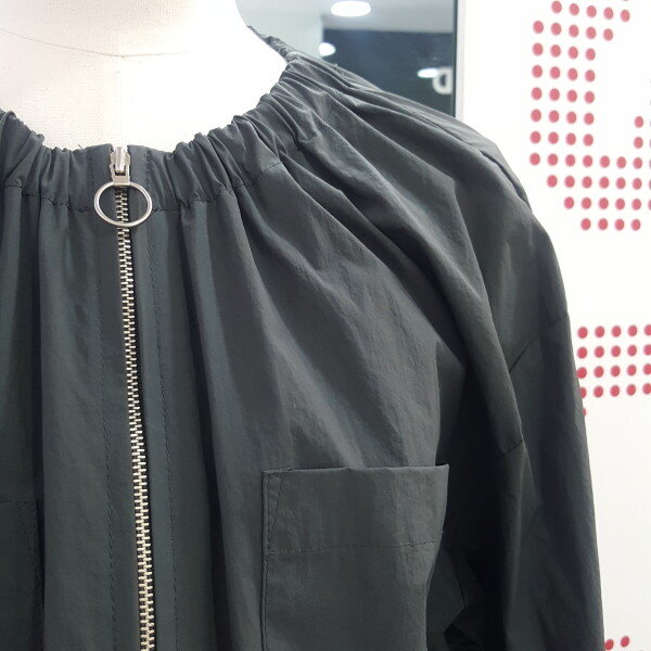 멋스런 컬러감의 블루종 바람막이 점퍼입니다. 넥선과 밑단이 밴딩주름 포인트로 독특하고 유니크한 디자인으로 멋스럽게 착용하실수 있습니다. 총장 56cm