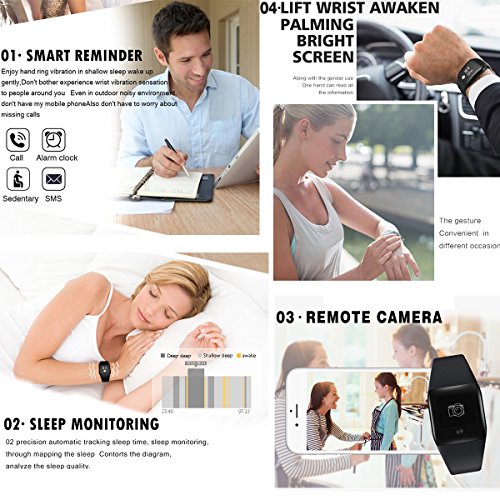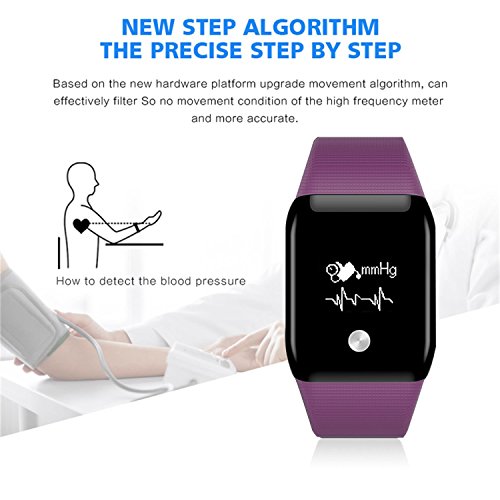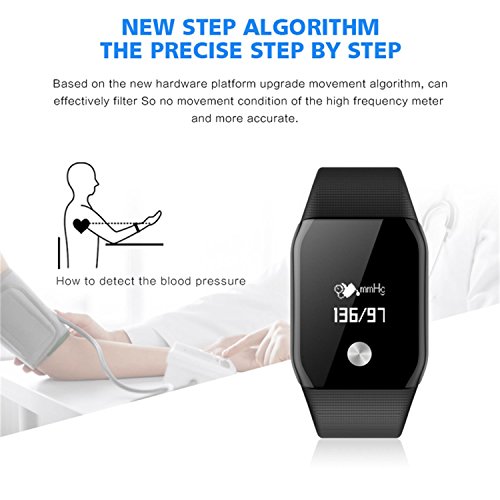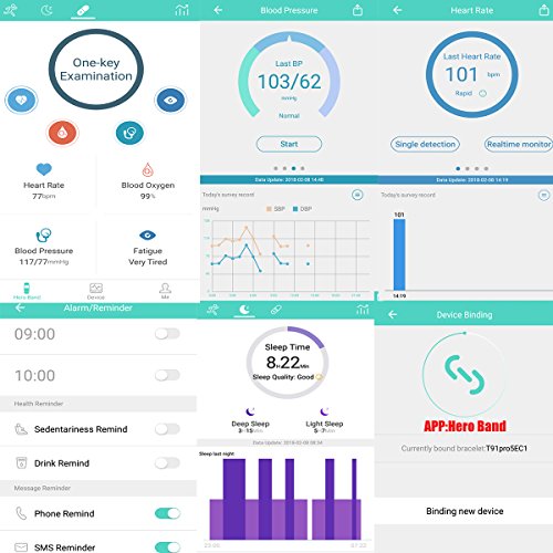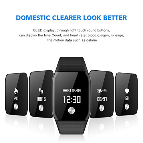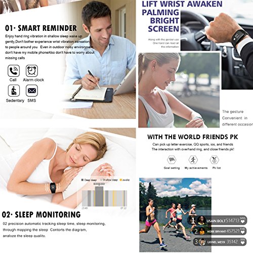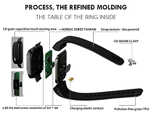 -. Feature : 【Sleep Monitor and Pedometer Bracelet】When you fall asleep with this bracelet,this fitness tracker will automatically monitors your sleep,you could know your deep sleep time and light sleep time,and total sleep time,and it has sport monitor,sedentary remind,drink remind,phone remind,and SMS reminder,twitter remind,facebook remind,skype remind,whatsapp remind,alarm clock,remote photograph. / 【Deep Waterproof Smart Bracelet with 0.66 OLED display】:Deep waterproof smart bracelet,resistant for dust, rain, washing, sweat and water splash for daily waterproof use only,you can wear it to swim.0.66 OLED display,soft TPU watch straps fits for wrist size from 5.7"-7.9".suit for men,women,boys,girls in any situation.great choice for mother's day gift,christmas gift,birthday gift,valentine's Day gift. / 【Fitness tracker with heart rate monitor,blood pressure,blood oxygen】:The device can measures the present blood oxygenr(Accuracy±1), blood pressure, heart rate (it can not be used as medical use,only a reference for your exercise), measuring method:Click one-key examination on Hero Band App,please wear arm brace arm horizontally on the desktop,,after 30 seconds,you could know your Heart rate,Blood pressure,blood oxygen,and fatigue.or long press the touch screen to test by bracelet. / 【How to connect bracelet with Hero Band APP】:1,Open the application "Hero Band APP" on mobile phone ,to enter into its home (Keep mobile phone 's blue-tooth on ),2.Click Connect Device,then click Binding Management,the application will search for the smart bracelet ,you will find a named blue-tooth,click it and bind with the bracelet.note:charge methods:find the charging touch spot at the back of the bracelet,use the charger aim at the touch spots for charging. / 【Compatibility With Andriod 4.4 or above,ios 8.2 or above】:The app supports most smart phones with Bluetooth 4.0. Support system: iOS 8.2 or above (iPhone SE, iPhone 5/5S/5C, iPhone 6/6S plus, iPhone 7/7S plus, etc.), Android 4.4 or above(Samsung Galaxy S8, S7/S7 Edge,etc ).