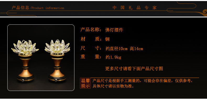 吉善缘 纯铜莲花灯供佛灯 供灯长明灯佛具用品工艺礼品摆件0754