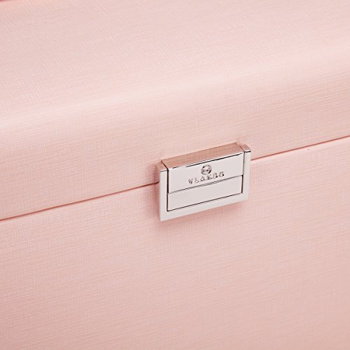 Vlando City Beauty Medium Jewelry Box, Faux Leather Jewelry Organizer, Vintage Gift for Women -Pink-Cross Pattern