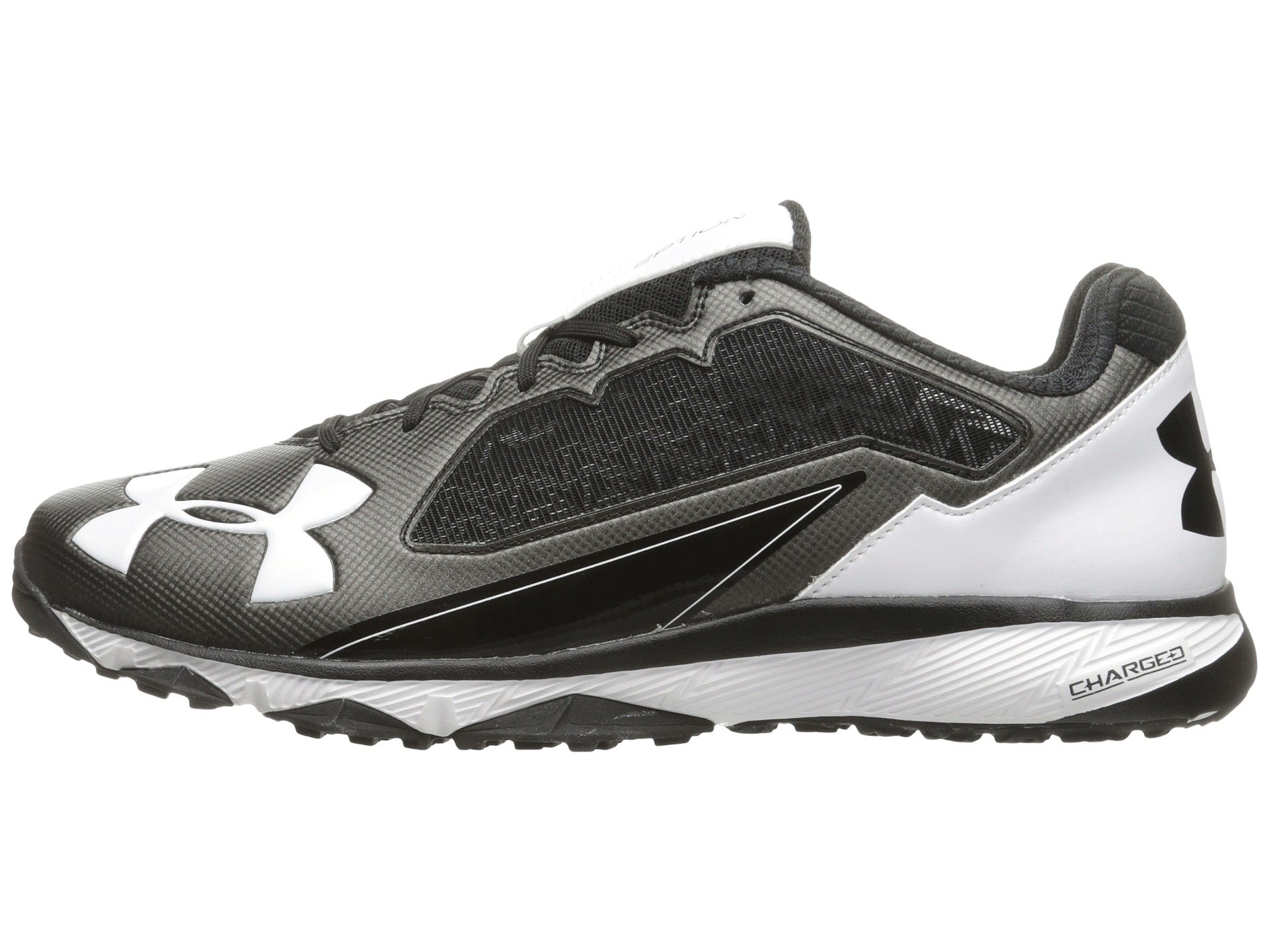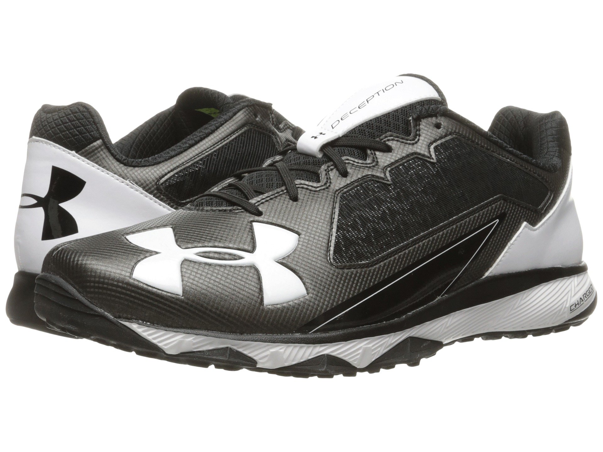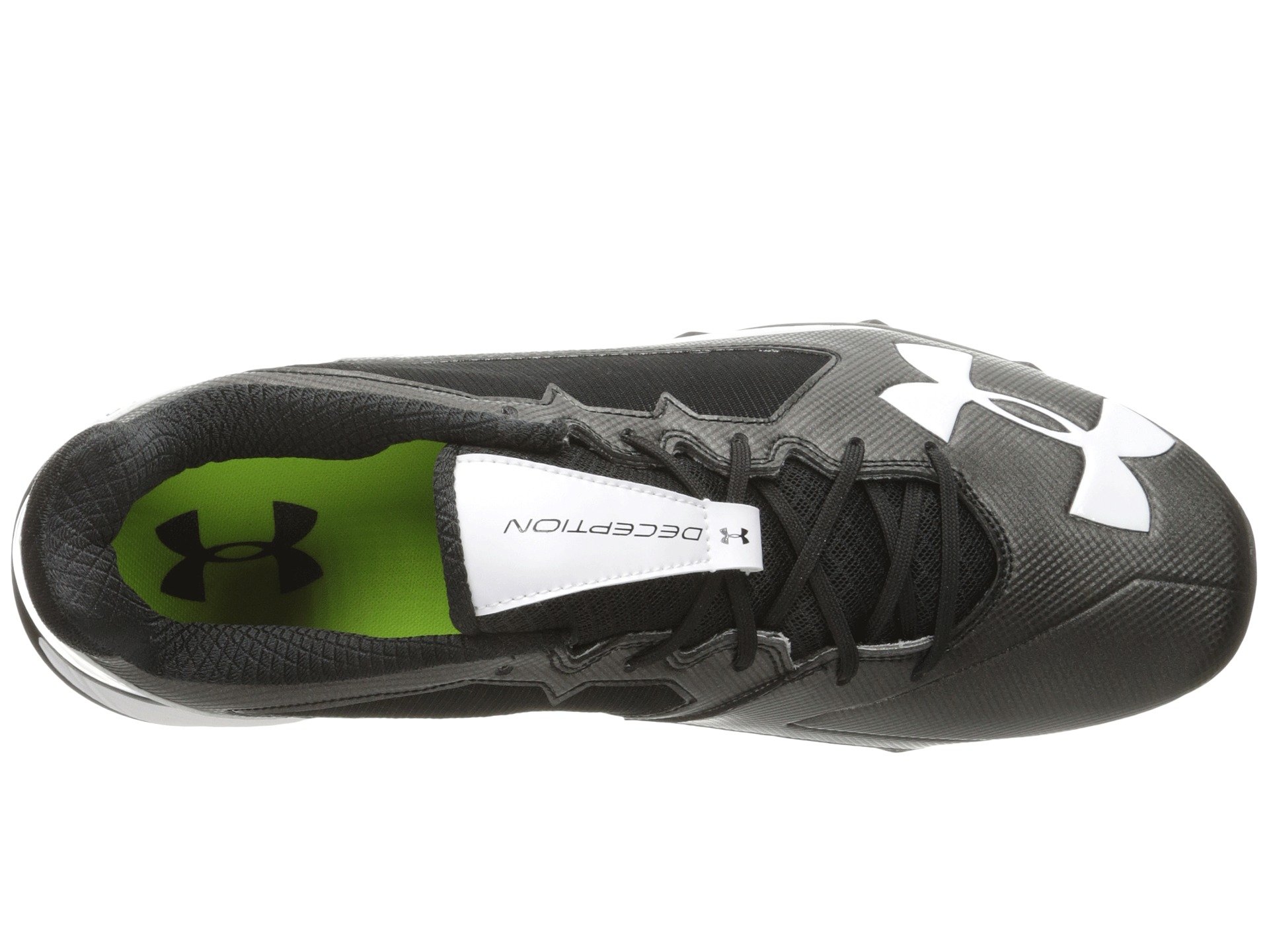 | Product Information SKU: #8761132Brush up your all-star moves each time you take to the practice field in the Under Armour? UA Deception Trainer. Flexible mesh and synthetic leather uppers. UA ClutchFit™ upper technology wraps the foot and ankle like a lightweight second skin for enhanced support and a great fit. Lace-up closure. Padded tongue and collar. Internal booty supplies a sung fit that morphs to the shape of your foot and ankle. Breathable fabric lining offers a great in-shoe feel. Lightly cushioned foam footbed. Charged Cushioning? midsole is soft and pliable during slow movements, yet firm and responsive during fast movements.Non-marking rubber outsole delivers lightweight traction over a variety of surfaces. Imported. Product measurements were taken using size 12, width D - Medium. Please note that measurements may vary by size.Weight of footwear is based on a single item, not a pair.Measurements: Weight: 14 oz |