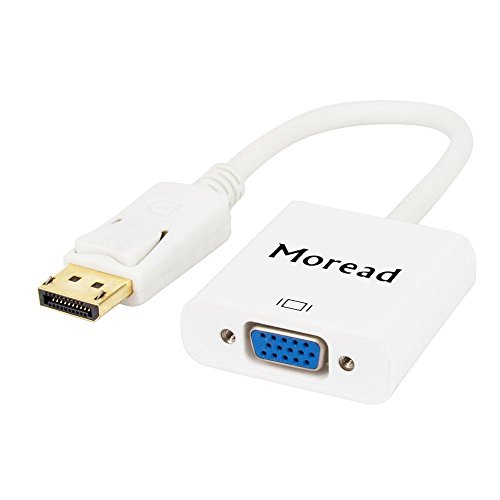 -. Feature : Moread DisplayPort to VGA adapter connects a DisplayPort compatible device (e.g. personal computer, laptop) to a monitor or projector with VGA port (This is NOT a USB to VGA adapter) / Premium Quality. The DisplayPort VGA adapter is equipped with a Gold-plated DisplayPort corrosion resistant connector, which ensures the stable signal transmission performance and a long lifespan / High Resolution. Supports resolutions up to 1920x1080 (1080p Full HD) including 720p and 1600x1200 for HDTV, VGA monitors or projectors / Secure Connection. The latches on DisplayPort adapter provide a secure connection between the DP adapter and your device. Simply depressing the button on DisplayPort connector can release the latches when unpling / What You Receive: Moread DP to VGA adapter, our 12-month warranty, and supportive pre-sales and post-sales customer service