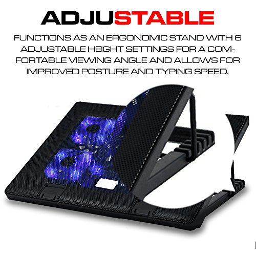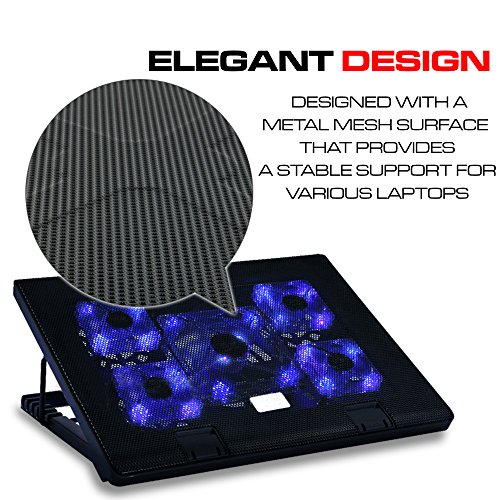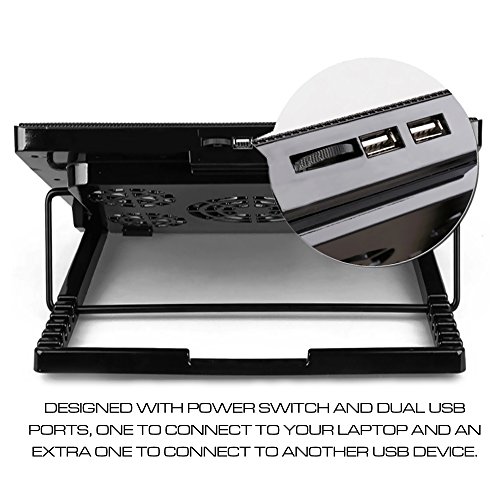 -. Binding : Electronics -. Brand : Qable Powerz(TM) -. EAN : 0640947061124 -. Feature : High Quality Ultra Slim Portable Lightweight USB Powered Laptop Cooler, Laptop Cooling Pad with 5 Powerful Fans suitable for 15.6 to 17.0 inches laptop computers. / Crafted with premium materials and circuitry that speak of high end quality and functionality. Designed with a metal mesh surface that provides a stable support for various laptops with sizes up to 15.6-inch and 17.0 inches. / Designed with 5 powerful yet very quite fans for a noise-free environment while you're doing your business. IT features high-quality multi-directional metal mesh offerring wear-resistant and stable surface. / Also functions as an ergonomic stand with adjustable height settings for a comfortable viewing angle and allows for improved posture and typing speed. / Designed with dual USB ports, one to connect to your laptop and an extra one to connect to another USB device. Slim, portable, and light weight allowing you to protect your investment wherever you go (Dimensions: 380×290×28mm). -. Label : Qable Powerz(TM) -. Manufacturer : Qable Powerz(TM) -. PackageQuantity : 1 -. ProductGroup : PC Accessory -. ProductTypeName : COMPUTER_ADD_ON -. Publisher : Qable Powerz(TM) -. Studio : Qable Powerz(TM) -. Title : Ultra Slim Portable USB Powered Laptop Cooler Cooling Pad Laptop Stand (5 Fans) for 15.6"~17" Laptop Notebook Computers (Black) -. UPC : 640947061124