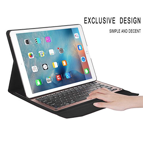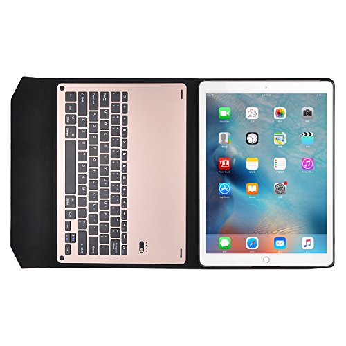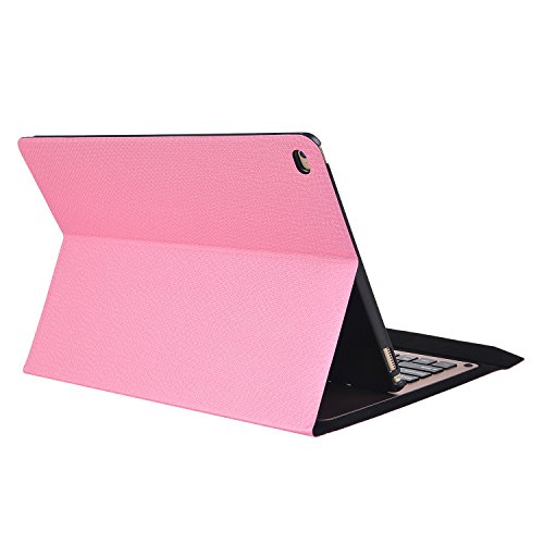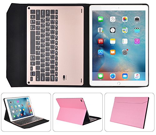 ipad pro keyboard case, KuGi ipad pro ultra-thin aluminum Bluetooth Keyboard Portfolio Case for Apple ipad pro 12.9 inch tablet. (Pink)