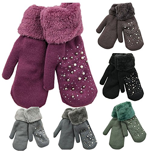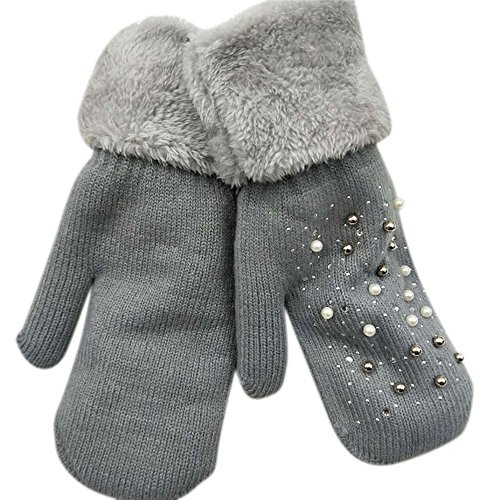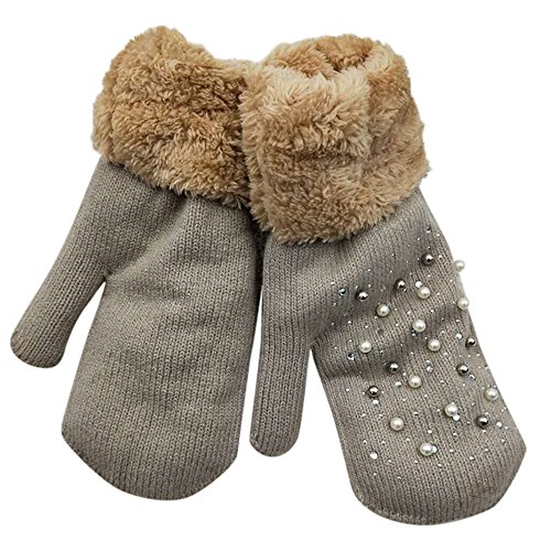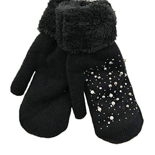 (taole)/Accessories/Cold Weather Accessories/DIRECT FROM USA/taole Pearl Gloves, Winter Women Glove Knitted Mittens Plush Thick Warm Gloves Mittens