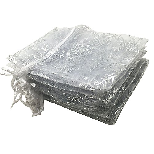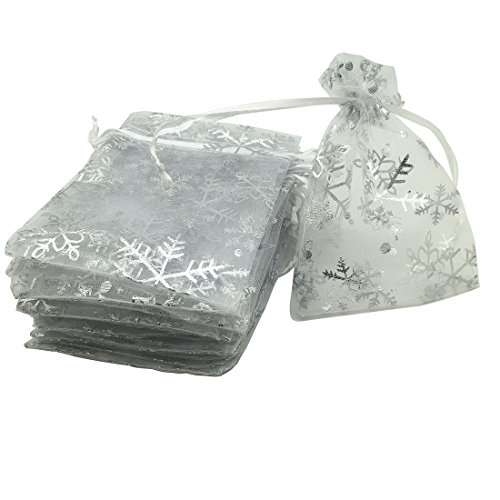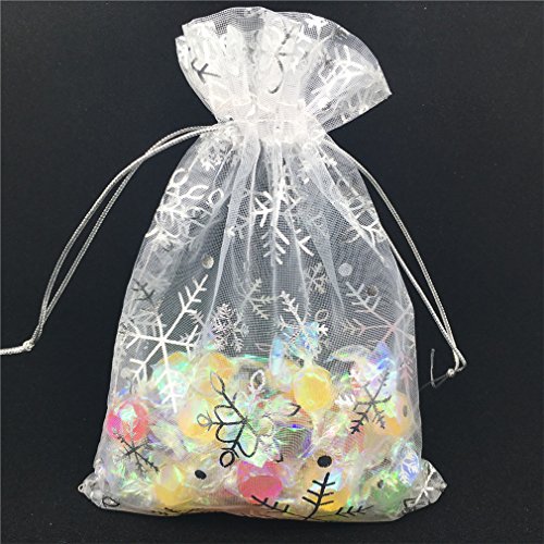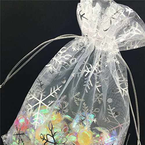 YIJUE 4.3x6.2 Inches Drawstrings Organza Gift Candy Bags Wedding Favors Bags (Snowflake)