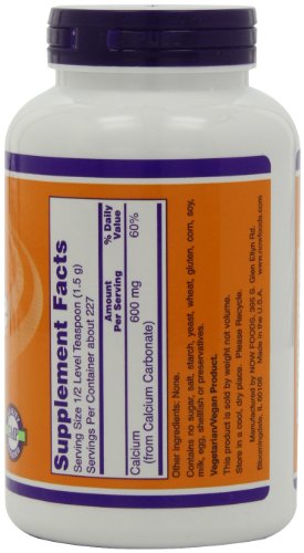 -. Binding : Health and Beauty -. Brand : Now Foods -. Feature : Supports bone health / 100% pure powder / High percentage of calcium / Vegetarian product -. Label : NOW Foods -. Manufacturer : NOW Foods -. MPN : B001F0R80E -. PackageQuantity : 1 -. PartNumber : B001F0R80E -. ProductGroup : Health and Beauty -. ProductTypeName : HEALTH_PERSONAL_CARE -. Publisher : NOW Foods -. Studio : NOW Foods -. Title : NOW Foods Calcium Carbonate