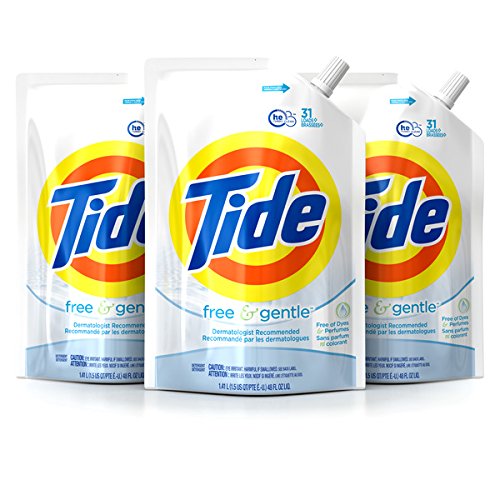 Tide Smart Pouch Free & Gentle HE Liquid Laundry Detergent, Pack of three 48 oz. pouches, 93 loads