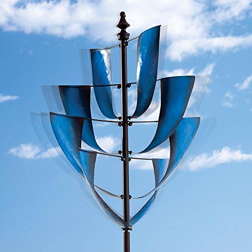 - Feature : Makes an impressive gift for decorating the yard or lawn. / Blue Sails Wind Spinner measures 17" at its widest point. / Made from weather-resistant metal coated with durable, blue and black paint. / Some minor assembly required, instructions included.