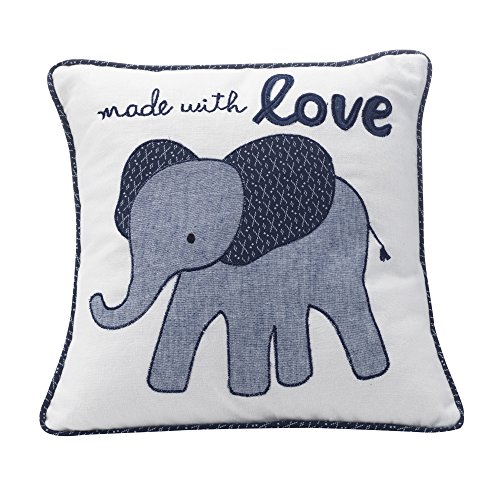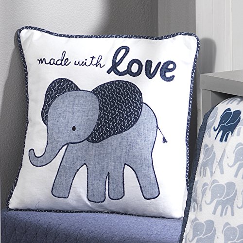 Lambs & Ivy Made with Love Elephant Decorative Pillow, Blue/White