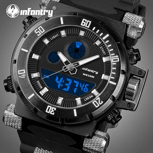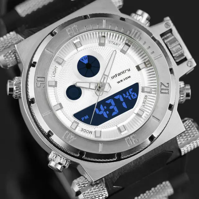 | [해외] 남성 스포츠 시계 보병 브랜드 듀얼 디스플레이 아날로그 디지털 시계 남성 시계 방수 크로노 그래프 석영 손목 |