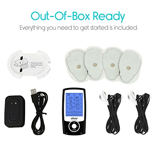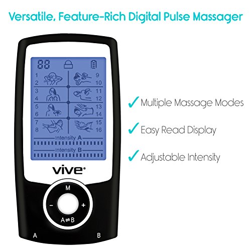 TENS Unit by Vive - Portable Electric Stimulation Machine - EMS Neuropathy Pain Relief Therapy - Muscle, Nerve, Back Pain & Tendonitis - Electrotherapy, Digital Pulse Massager & Home Stim Device