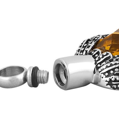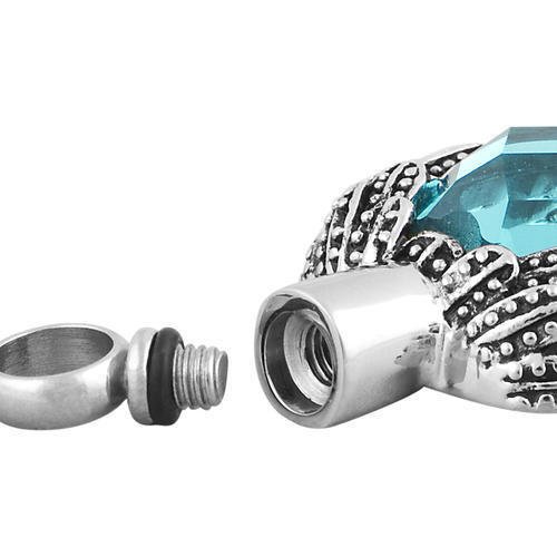 -. Feature : Stainless Steel / Holds Small Amount of Dried Flowers, Burial Soil, Locks of Hair & Cremains / Outside Size: 3/4" W x 1-1/4" H x 3/8" D / 20" Black Satin Cord & Presentation Box Included / The Cremation Pendant Closes Securely With A Threaded Screw