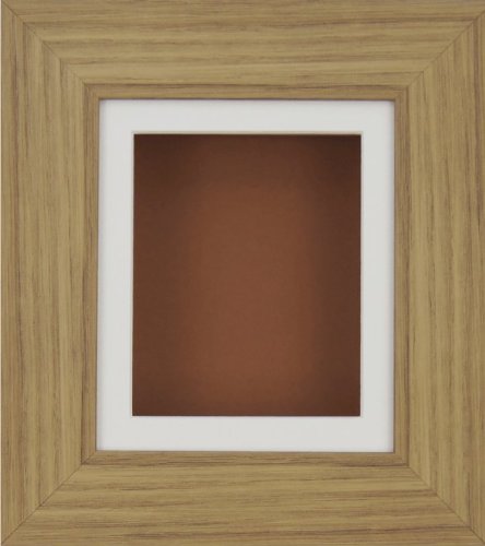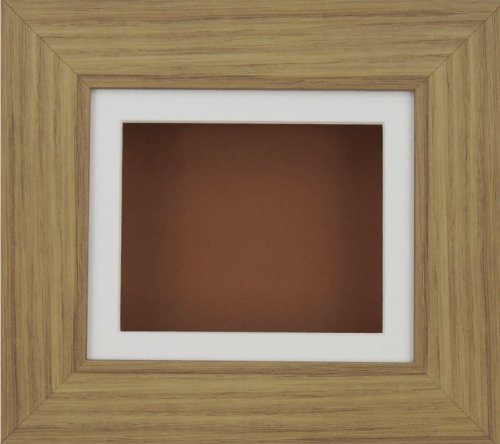 -. Title : BabyRice Deep Box Display Frame for 2D 3D Art Objects Medal Keepsake Baby Casts 1st Bootees Flowers Oak effect / Cream Mount / Brown backing