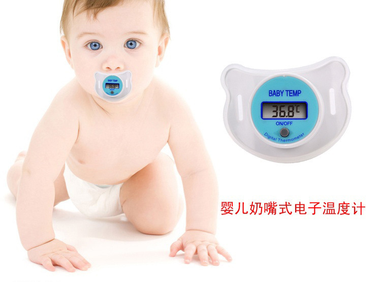 奶嘴电子体温计是专为婴幼儿设计的,是根据婴幼儿的生理特点,应用微电脑科技,将测量体温的装置,特制成奶嘴型,只要将它放在幼儿口中,大约3分钟左右,有提示声音告知测温完成,从显示屏中即可读取小儿的体温。本品应用方便,安全,对幼儿无任何伤害,并且便于携带,可在任何时间,任何地点,随时对幼儿进行检测,使母亲能及时掌握幼儿的健康状况,实在是初为人母最理想的家庭监测仪器。