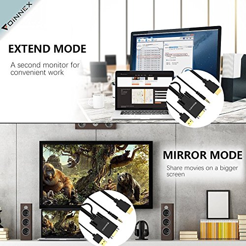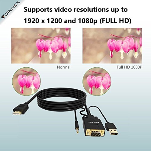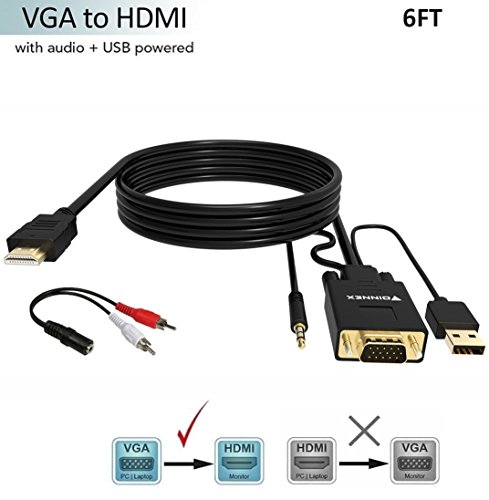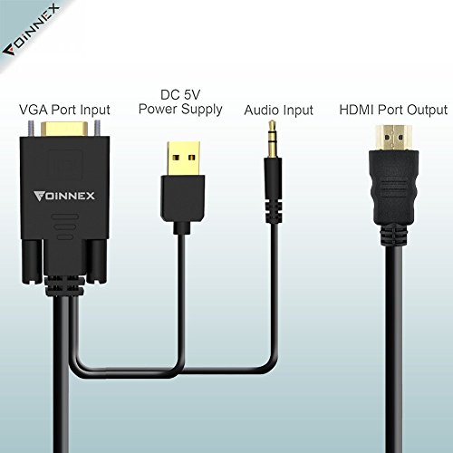 - FOINNEX 1.8 m VGA to HDMI cable converts from VGA ( analog signal output such as PC/laptop/HD TV-Box) to HDMI (digital signal input such as monitor, HDTV, projector), Supports Both Video and Audio.