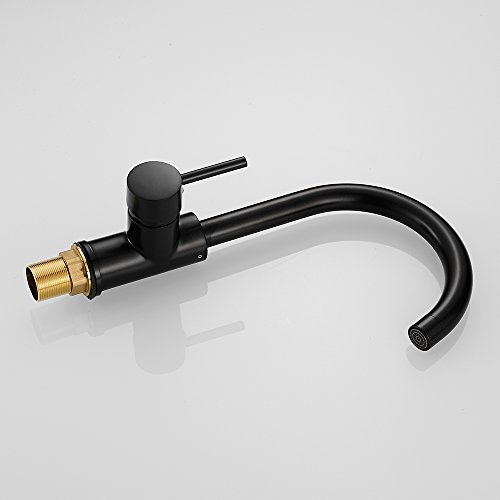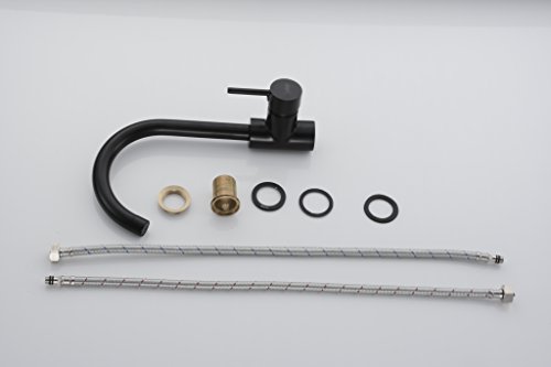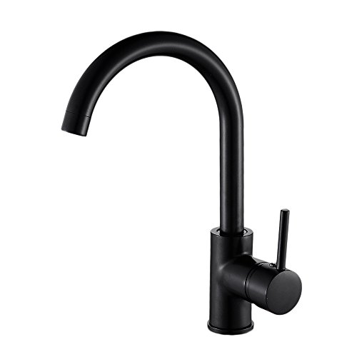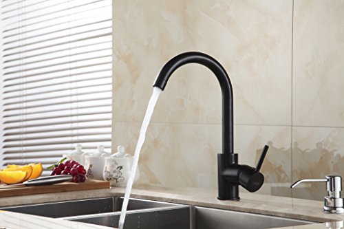 OWOFAN Black Kitchen Sink Faucet 360° Swivel Spout High Arch Swan Sink Sprayer, Brass WF-7114R