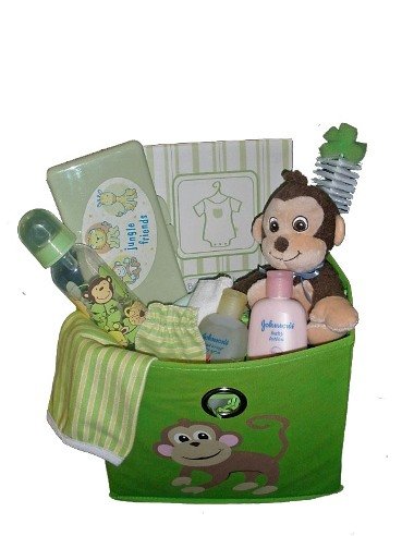 -. Title : Monkey Baby Gift Basket - Mommy to Be Gift