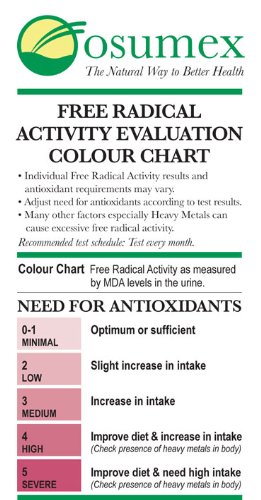 -. Binding : Health and Beauty -. Brand : Osumex -. EAN : 0705105304618 -. Feature : A simple kit that tests for free radical activity in the body using urine / It tests for Malondialdehyde (MDA) which is a by-product of free radical activity / It is 50 times more accurate than a blood test / Simple and easy to use at home with results in minutes -. Label : Osumex -. Manufacturer : Osumex -. PackageQuantity : 1 -. ProductGroup : Health and Beauty -. ProductTypeName : HEALTH_PERSONAL_CARE -. Publisher : Osumex -. Studio : Osumex -. Title : Osumex Free Radical Test Kit -. UPC : 705105304618